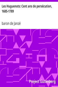 "Les Huguenots: Cent ans de persécution, 1685-1789" by baron de Janzé is a historical account written in the late 19th century. The work delves into the plight of the Huguenots in France during a century marked by severe religious persecution, reflecting on the impact of Louis XIV’s policies and the broader implications of religious intolerance. Th...